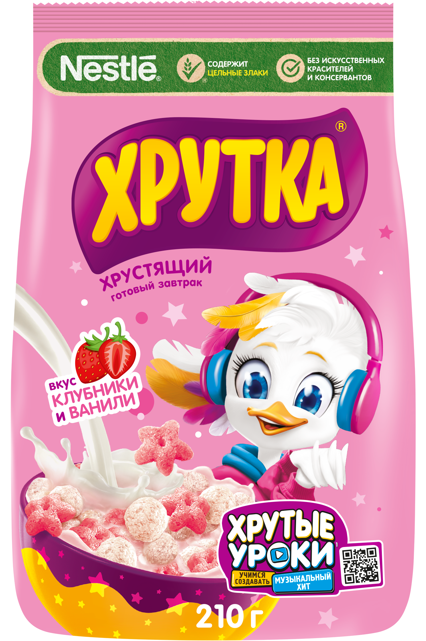 Готовый завтрак Хрутка® "Клубнично-ванильное настроение" — это новый весёлый завтрак с миксом звёздочек со вкусом клубники и шариков со вкусом ванили. Такое сочетание вкусов в одной тарелочке никого не оставит равнодушным!