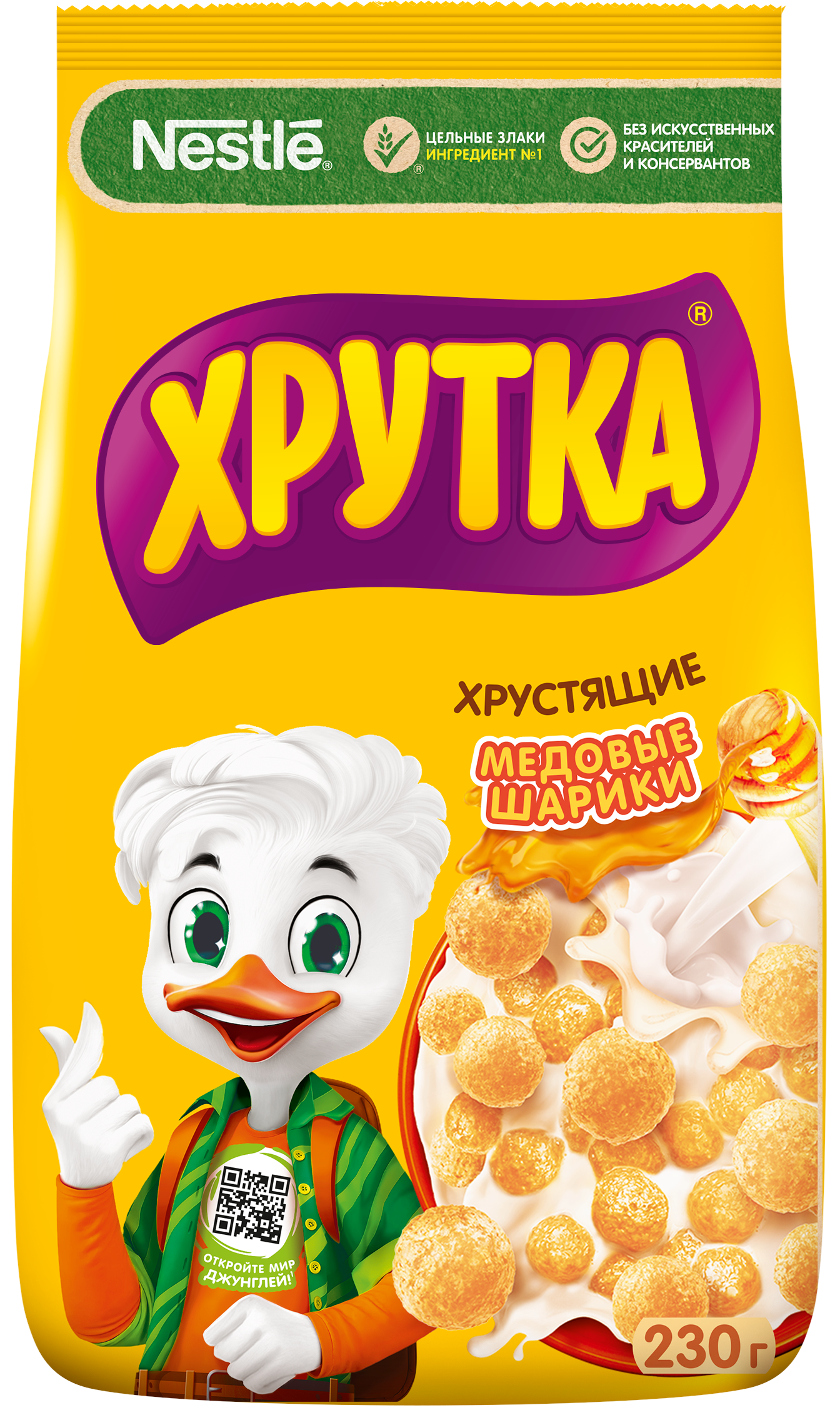 Готовый завтрак ХРУТКА® медовые шарики 230 г - это именно то, что вам нужно! Добавьте молоко, йогурт, кефир или сок – и ваше утро начнется со вкусного разнообразного завтрака для всех и каждого! В состав готового завтрака ХРУТКА® медовые шарики входят цельные злаки, которые помогают обеспечить организм важными питательными веществами – сложными углеводами, белками и минеральными веществами. Внешняя оболочка цельных злаков (отруби) содержит пищевые волокна, которые способствуют нормальному пищеварению.