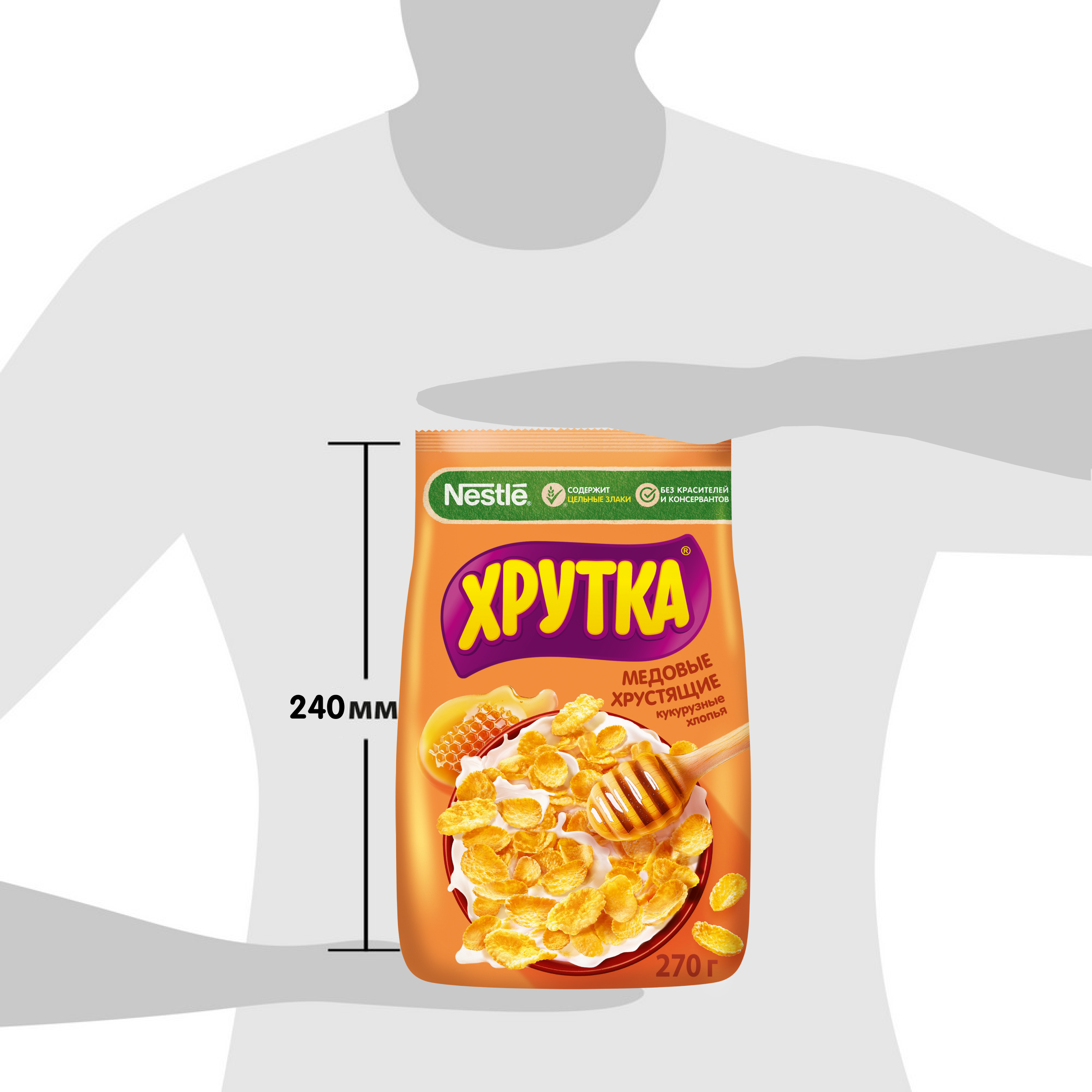 Готовый завтрак ХРУТКА® медовые хлопья - это именно то, что вам нужно! Добавьте молоко, йогурт, кефир или сок – и ваше утро начнется со вкусного разнообразного завтрака для всех и каждого! В состав готового завтрака ХРУТКА® медовые хлопья входят цельные злаки, которые помогают обеспечить организм важными питательными веществами – сложными углеводами, белками и минеральными веществами. Внешняя оболочка цельных злаков (отруби) содержит пищевые волокна, которые способствуют нормальному пищеварению.