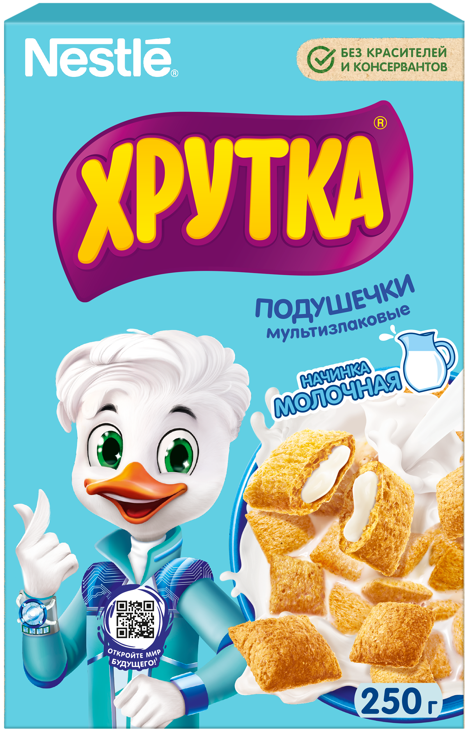 ХРУТКА®. Хрустящие мультизлаковые подушечки с молочной начинкой, обогащённые кальцием, коробка, 250 г